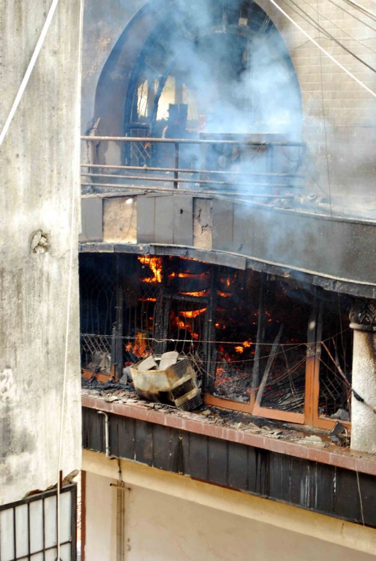 Huge fire broke out from Book Depot at near Abid Tilknager Road new Building also fully damage more then dozen firefighters vehicles control over five hors loss of property in the rupees of lakhs.