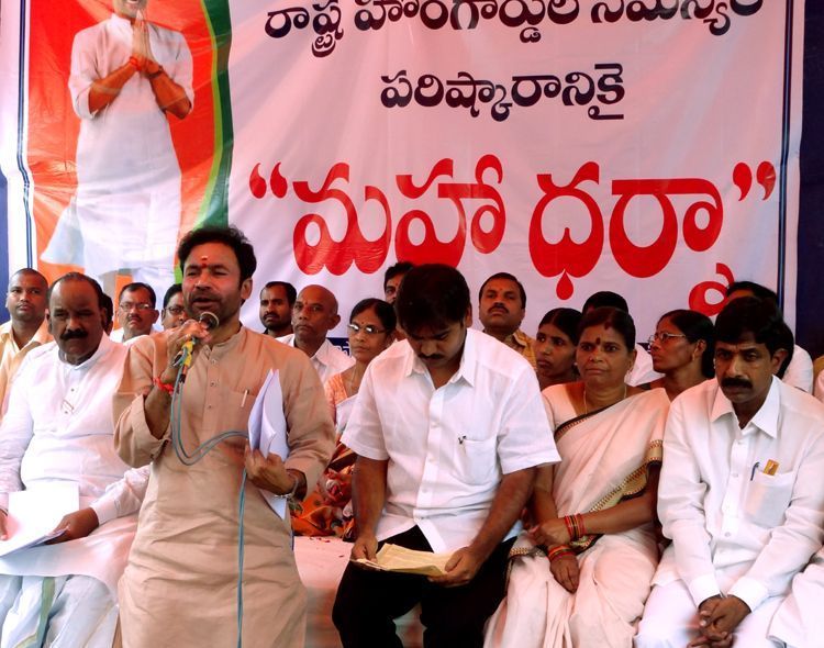 BJP State President G Kishan Reddy staged dharna "Maha Deeksha" at Indira Park here on Friday in protest of the problems faced by the Home Gaurds. INN-Photos