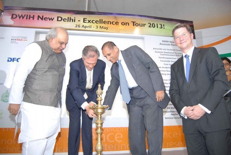 Governor ESL Narasimhan and German Ambassador Michael Steiner seen inspecting Magnetic Levitation Track after Inauguration DWIH New Delhi Excellence on tour 2013.