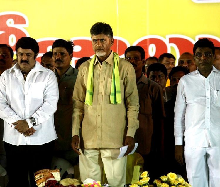 Naidu's padayatra concludes on a grand note: TDP president N.Chandrababu Naidu along with actor Balakrishna at a massive public meeting organised on the eve conclusion of marathon padayatra Vastunna Mee Kosam undertook by Naidu at Visakhapatnam on Saturday.