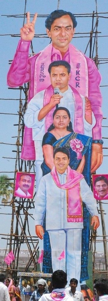 Telangana rashtirya samithi12th formation day public Meeting At Nizamabad District on 27th April TRS president K chandersheker Rao Mp touching Leg of Elder brother Kishan rao on stage.