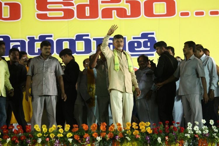 Naidu's padayatra concludes on a grand note: TDP president N.Chandrababu Naidu along with actor Balakrishna at a massive public meeting organised on the eve conclusion of marathon padayatra Vastunna Mee Kosam undertook by Naidu at Visakhapatnam on Saturday.