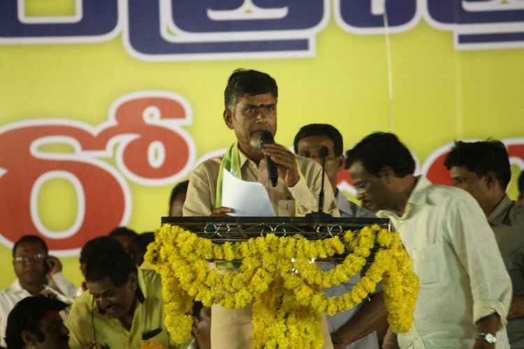Naidu's padayatra concludes on a grand note: TDP president N.Chandrababu Naidu along with actor Balakrishna at a massive public meeting organised on the eve conclusion of marathon padayatra Vastunna Mee Kosam undertook by Naidu at Visakhapatnam on Saturday.