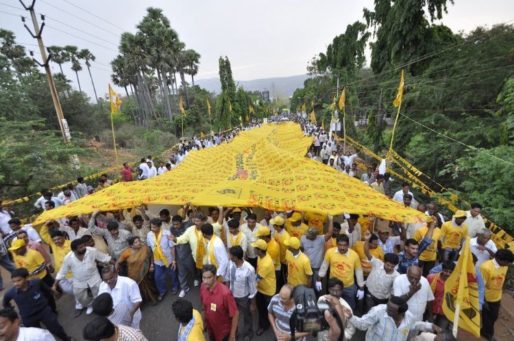 Naidu's padayatra concludes on a grand note: TDP president N.Chandrababu Naidu along with actor Balakrishna at a massive public meeting organised on the eve conclusion of marathon padayatra Vastunna Mee Kosam undertook by Naidu at Visakhapatnam on Saturday.
