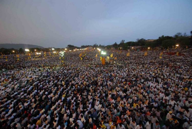 Naidu's padayatra concludes on a grand note: TDP president N.Chandrababu Naidu along with actor Balakrishna at a massive public meeting organised on the eve conclusion of marathon padayatra Vastunna Mee Kosam undertook by Naidu at Visakhapatnam on Saturday.