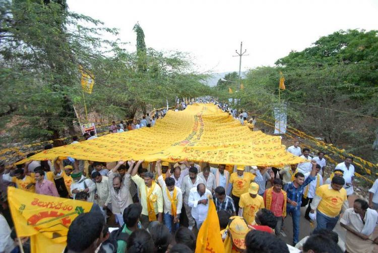 Naidu's padayatra concludes on a grand note: TDP president N.Chandrababu Naidu along with actor Balakrishna at a massive public meeting organised on the eve conclusion of marathon padayatra Vastunna Mee Kosam undertook by Naidu at Visakhapatnam on Saturday.