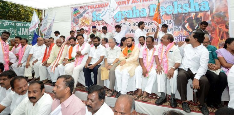 Joint action committee (Telanga region) stage dharna in New Delhi on 29th April BJP,TRS Leaders participated.