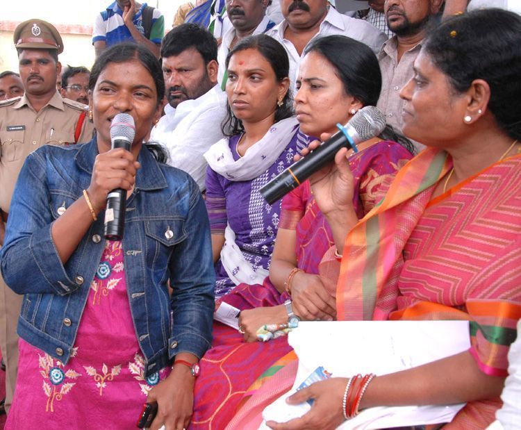 YSR Congress party's hon. president Smt. YS Vijayamma is all ears to the owes of a house wife at Rachabanda meeting held in Addagutta of Secunderabad on Wednesday.