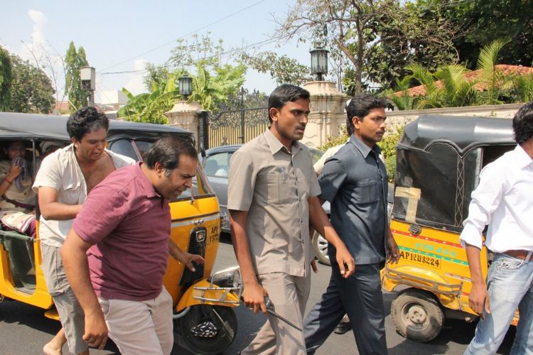 This is no act: Bodyguards of actor Ram Charan Tej, son of Union Minister Chiranjeevi, assaulting software engineers — Phanish (whose shirt is torn) and Kalyan (who is being kicked) — for reportedly not giving way to the actor's Aston Martin at a free left turnnear a traffic junction in Banjara Hills on Sunday afternoon.