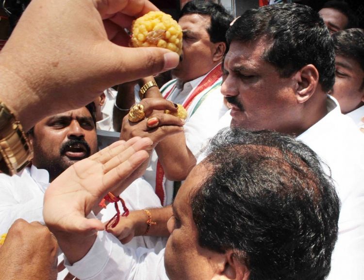 Ap congress activates celebrate congress victory in Karnataka the activates distributing sweets busting crackers buitiful Dancing at Gandhi bhavan on 8th May Congress President Mr Bucha satayanarayna led celebrate
