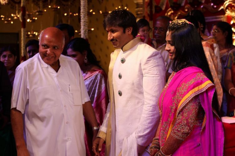 Actor Gopichand's wedding celebrations kicked off on Saturday and went on till Sunday evening at N Convention in Hyderabad. His close friends and those from the film fraternity have greeted Gopichand and his new bride Reshma. Actors Pawan Kalyan, Ravi Teja and a host of leader stars graced the celebrations.