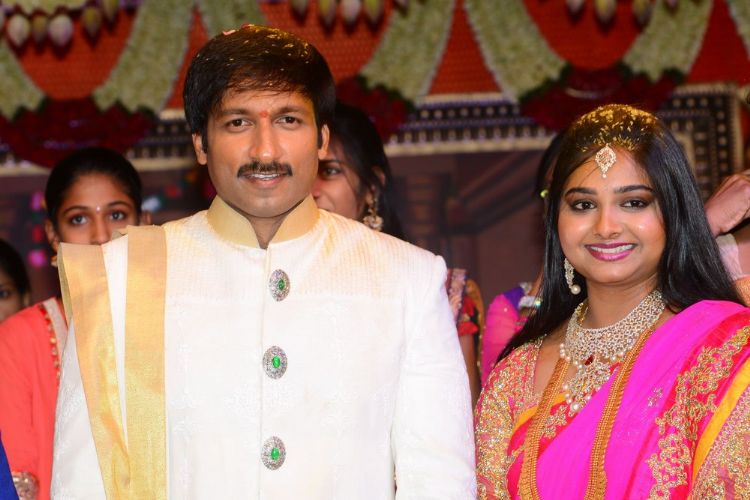 Actor Gopichand's wedding celebrations kicked off on Saturday and went on till Sunday evening at N Convention in Hyderabad. His close friends and those from the film fraternity have greeted Gopichand and his new bride Reshma. Actors Pawan Kalyan, Ravi Teja and a host of leader stars graced the celebrations.
