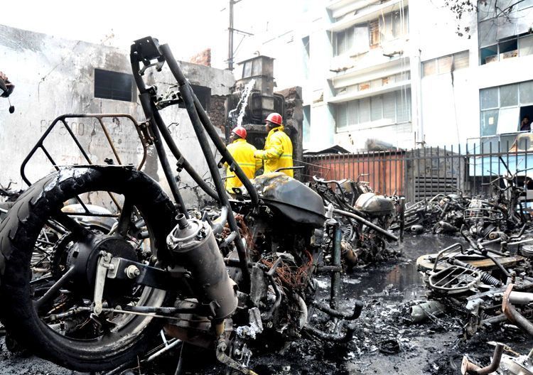 Two wheelers and property worth several lakhs gutted in a fire accident at Paigah Plaza at Basheerbagh here on Wednesday - INN Photos