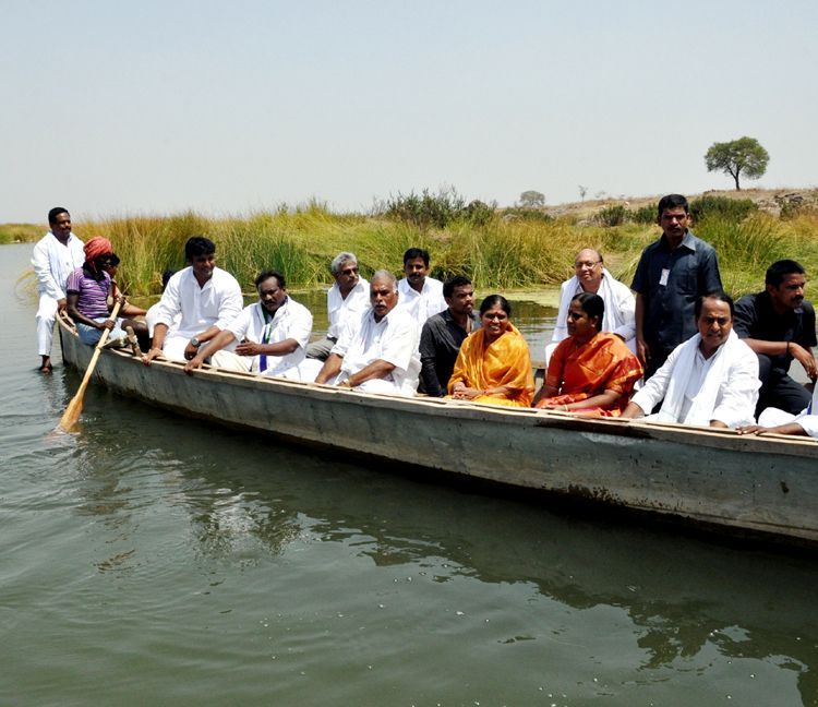 YSR Congress party hon. president Smt. YS Vijayamma along with party leaders today visited Tummidihat village in Adilabad dist. where the late chief minister YS Rajasekhara Reddy laid foundation stone for Pranahita Chevella project and performed ksheerabhishekam to the plaque.