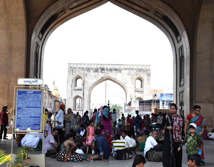 Visitors beat the heat under the shade of historic Charminar here on Thursday - INN Photos