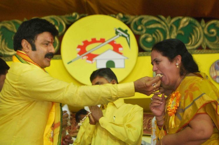 TDP president N Chandrababu Naidu and actor Balakrishna join other leaders in NTR Birth day celebrations in Mahanadu held at Gandipet.