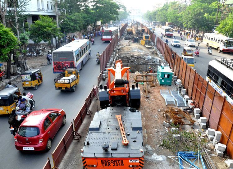 Metro rail works are going on in full swing at Nampally Road - INN Photos