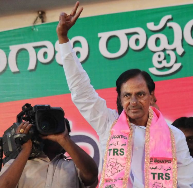 Congress leader K Kesava Rao, MPs G Vivek and Manda Jaganadham, former minister G Vinod formally joins TRS in the presence of TRS chief K Chandrasekhara Rao at a hugely attended public meeting held in Nizam College grounds here on Sunday.