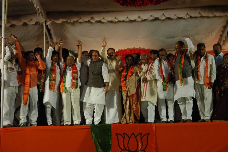 BJP National President Rajnath Singh addressing Public meeting in Hyderabad at Nizam collage