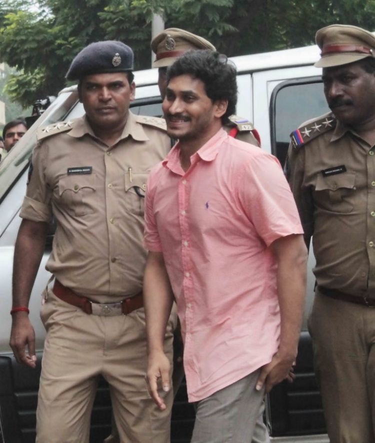 YSR Congress chief YS Jaganmohan Reddy comes out of Chanchalguda Jail to attend CBI court in Nampally on Friday.
