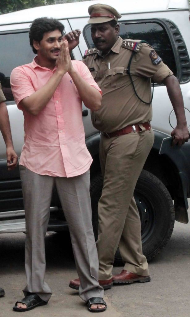 YSR Congress chief YS Jaganmohan Reddy comes out of Chanchalguda Jail to attend CBI court in Nampally on Friday.