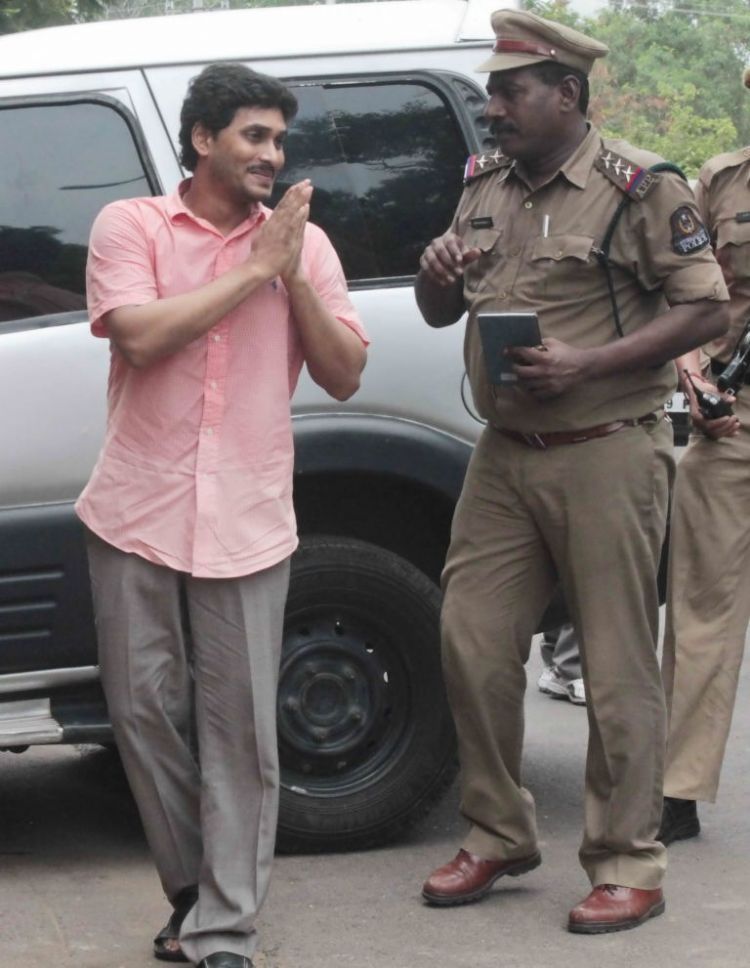 YSR Congress chief YS Jaganmohan Reddy comes out of Chanchalguda Jail to attend CBI court in Nampally on Friday.