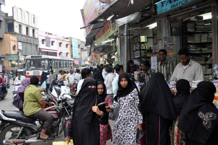 As schools are re-opening, heavy rush for purchase of school books at Chowk in the Old City, Hyderabad on Saturday - INN Photos
