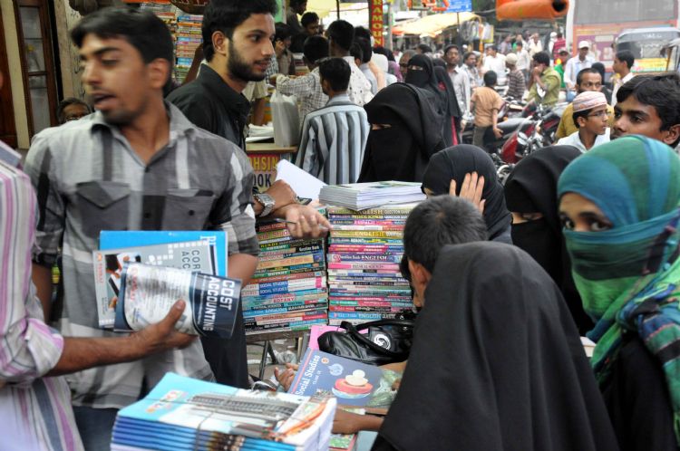 As schools are re-opening, heavy rush for purchase of school books at Chowk in the Old City, Hyderabad on Saturday - INN Photos