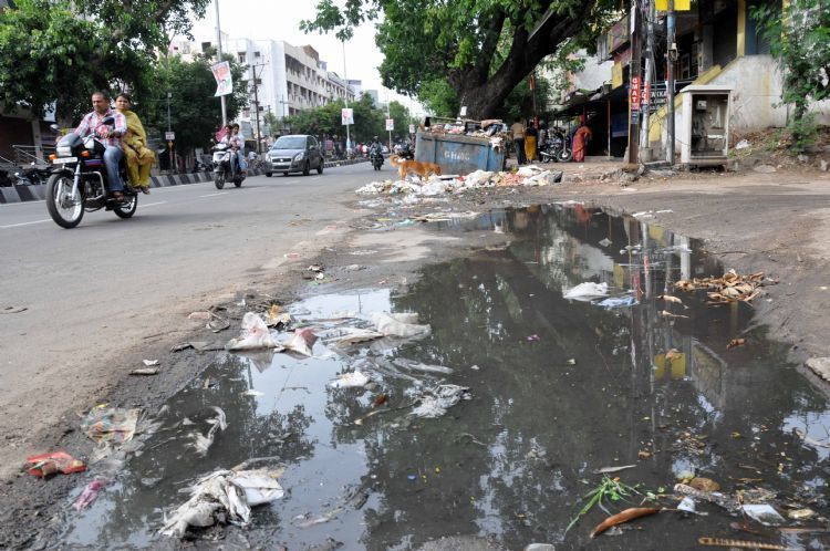 Drain water and garbage on road at Nallakunta in Hyderabad City cause inconvenience to passers by - INN Photos