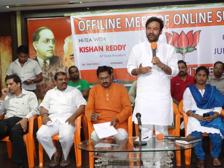BJP State President G Kishan Reddy addresses party IT Cell meeting at party headquarters at Nampally here on Sunday - INN Photos