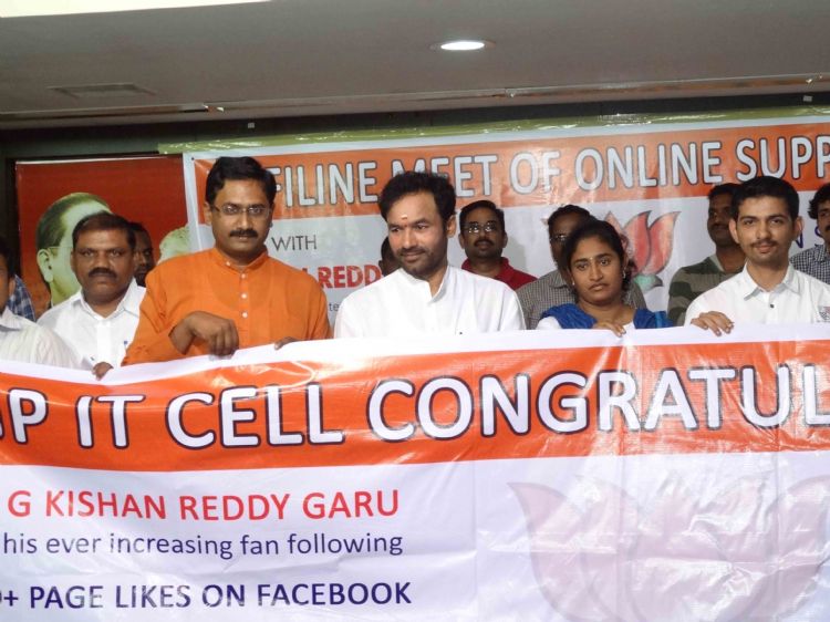 BJP State President G Kishan Reddy addresses party IT Cell meeting at party headquarters at Nampally here on Sunday - INN Photos