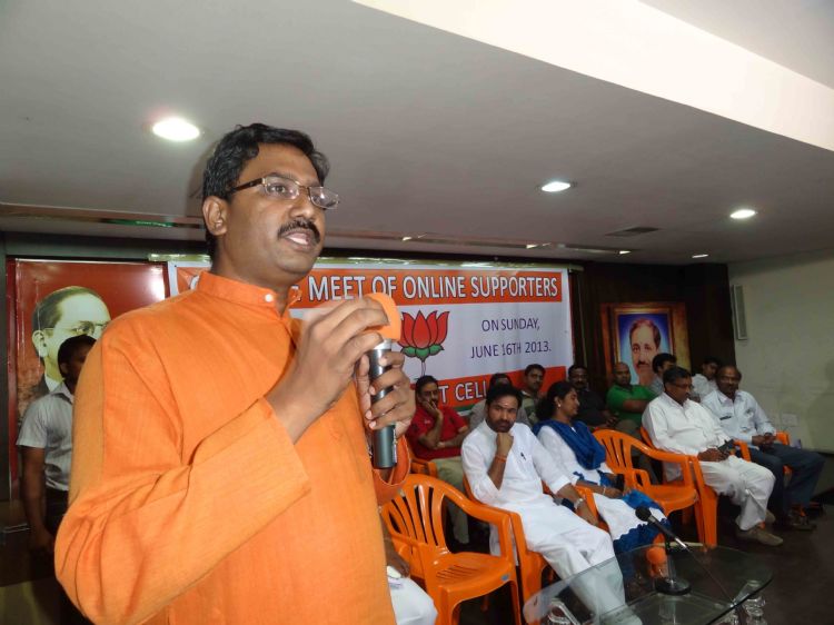 BJP State President G Kishan Reddy addresses party IT Cell meeting at party headquarters at Nampally here on Sunday - INN Photos
