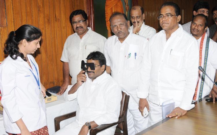 Ministers and MLAs go for eye check-up after Speaker Nadendla Manohar inaugurates the camp at Committee Hall No 3 of State Legislative Assembly building here on Monday - INN Photos