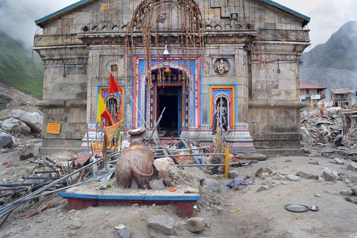 The unprecedented flood and rains have badly damaged the famous Kedarnath temple. Rescuers have now reached the temple. Here are the first pictures taken after the devastating flood. Other buildings around it were also damaged following monsoon rains at the Holy city in Uttrakhand.