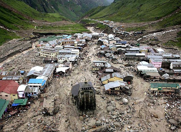 An arial view of Kedarnath temple and its premises after last weeks devastating floods that completely ravaged the 8th century shrine of Lord Siva in the state of Uttarakhand. Nearly 4000 piligrams are feared to be buried under the mud or washed away in flash floods in Kedarnath alone.