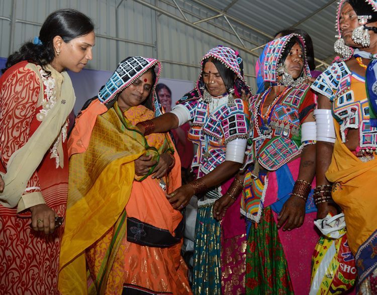 YSRCP honorary president Smt.Y.S.Vijayamma in traditional Lambada attire at a meeting in Kalwakurthy where she interacted with local and party workers on Saturday.