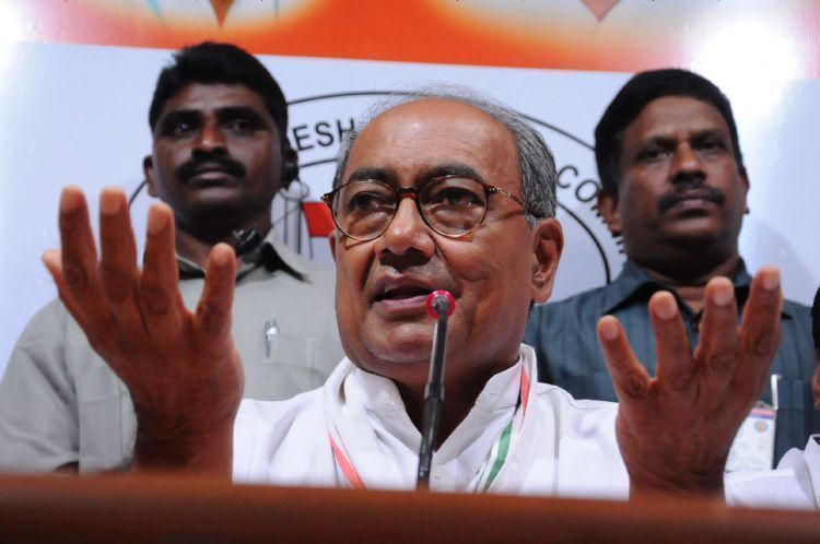 Congress Party A.P Incharge AICCI general secratry Mr Digvijay Singh along with cheif Minister Kiran kumar Reddy, and deputy Cheif minister Damodhar Rajnarsimha, Bothsa Satayanarayana APCCI president addressing Media at Gandhi Bhavan.