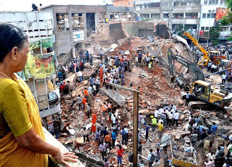 12 people were killed and many injured after an 80-year-old building collapsed in Secunderabad Monday. The 3-storey building of the Iranian City Light hotel collapsed at around 6:30 am. Rescue teams managed to pull out 10 people from the rubble and shift them to Gandhi Hospital.