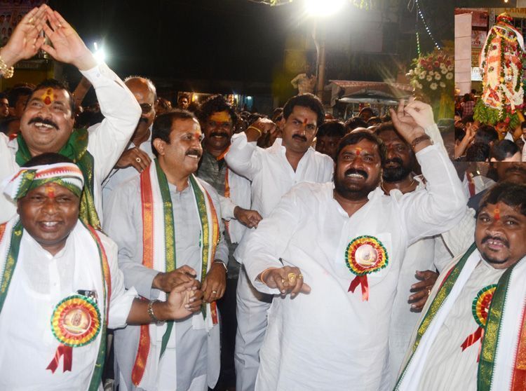 Telangana Congress MPs Madhu Yashki, Rajaiah, Anjankumar Yadav and Ponnam Prabhakar shakes a leg at Bonalu procession in Secunderabad.