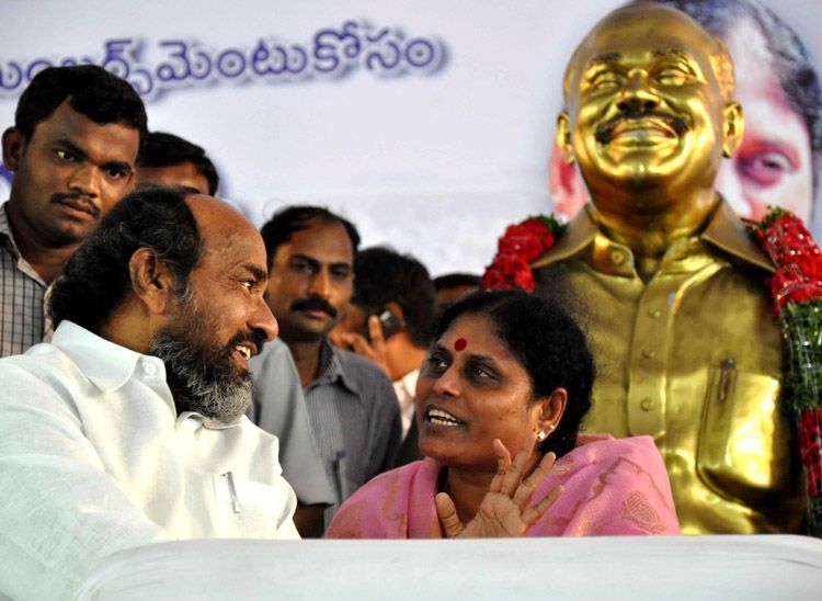 YSR Congress party honorary president Smt.Y.S.Vijayamma begins two day sit in fast demanding government to implement Fees Reimbursement scheme with out any conditions to all the eligible poor students on Thursday at Indiara Park, Hyderabad.