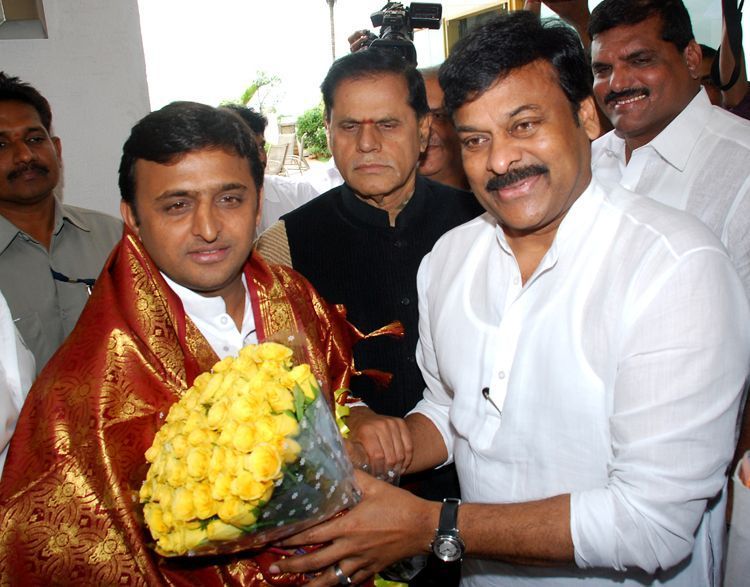 Uttara Pradesh Chief Minister Akhilesh Yadav visits Union Minister for Tourism Chiranjeevi at his residence in Jubilee Hills, Hyderabad.