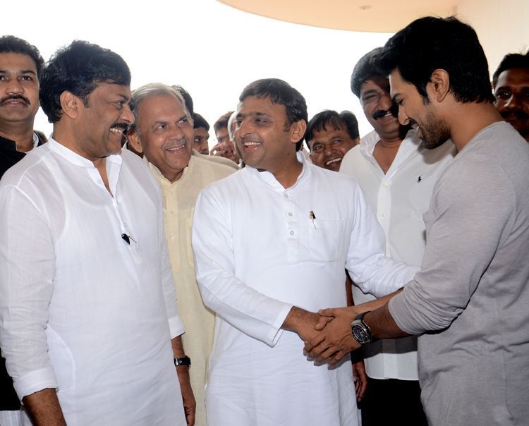 Uttara Pradesh Chief Minister Akhilesh Yadav visits Union Minister for Tourism Chiranjeevi at his residence in Jubilee Hills, Hyderabad.