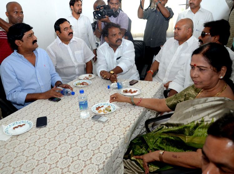 Seemandhra ministers after a brainstorming meeting at Minister's quarters in Banjara Hills here on Wednesday speaking to media persons. The ministers have also served a veiled threat to party top brass against any move on dividing the state.