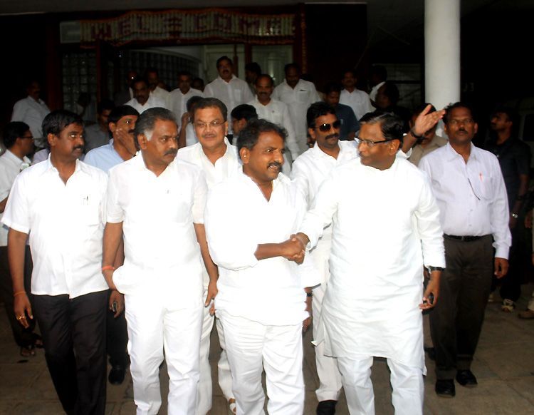 Seemandhra ministers after a brainstorming meeting at Minister's quarters in Banjara Hills here on Wednesday speaking to media persons. The ministers have also served a veiled threat to party top brass against any move on dividing the state.