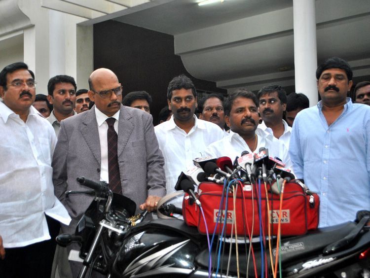 Seemandhra ministers after a brainstorming meeting at Minister's quarters in Banjara Hills here on Wednesday speaking to media persons. The ministers have also served a veiled threat to party top brass against any move on dividing the state.