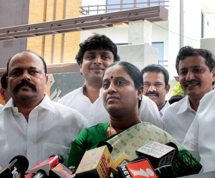 Telangana leaders of YSR Congress party Konda Surekha, Murali along with others speaking to media at Lotus Pond after meeting party hon. president Smt. YS Vijayamma on Saturday.