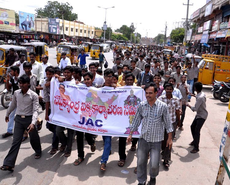 Students of Samaikyandhra JAC staging rally against proposed division of state in Kurnool on Tuesday.