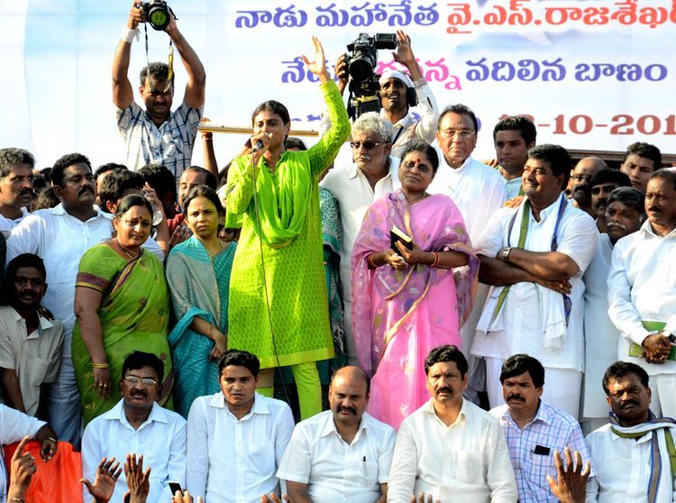 Smt. Sharmila addressing a mammoth public meeting held at Ichapuram on Sunday on the concluding day of 3,123 KM of marathon Maro Praja Prasthanam padayatra which commenced during October, 2012. YSRCP hon. president Smt. YS Vijayamma along with host of party leaders attends the event.