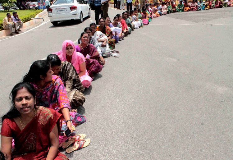 Andhra employees of AP secretariat staging a sit in protest in the secretariat premises on Wednesday in Hyderabad demanding to roll back decision to divide the state.