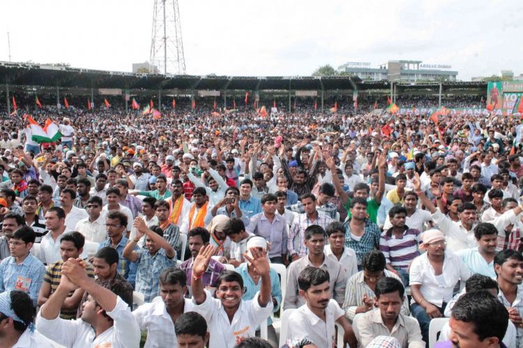 BJP's national election campaign chief Narendra Modi addressing massive public meeting in Hyderabad at Lal Bahadur stadium on Sunday. AP state BJP president Kishan Reddy, former Union Minister Bandru Dattatreya, MP Venkaiah Naidu were present.